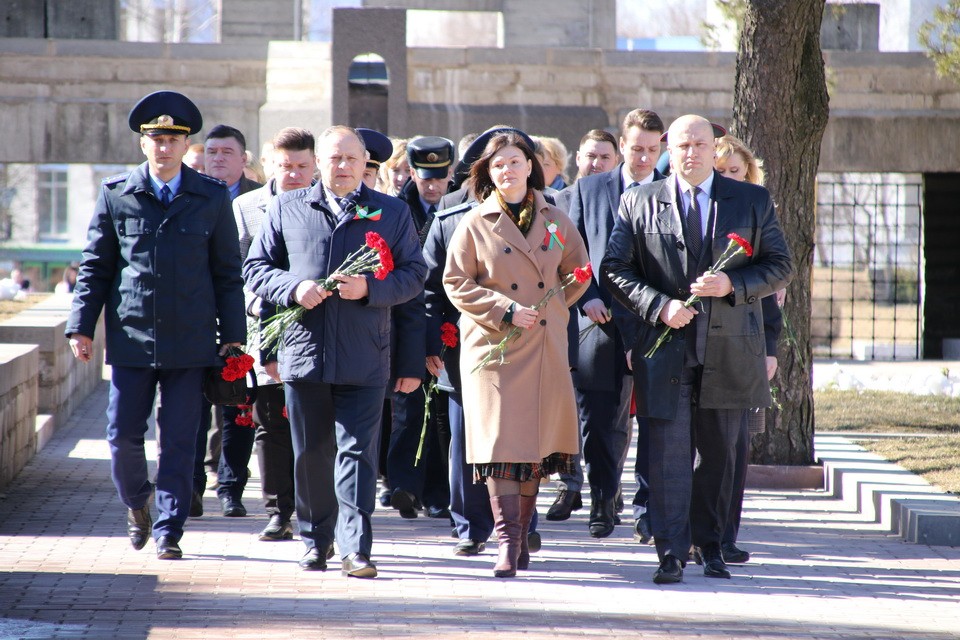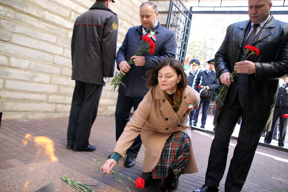 Представители администрации города и Октябрьского района, депутатского корпуса, трудовых коллективов, общественных объединений, молодежь, и неравнодушные жители возложили цветы к Вечному огню и почтили минутой молчания память тех белорусов, которые стали жертвами фашизма.