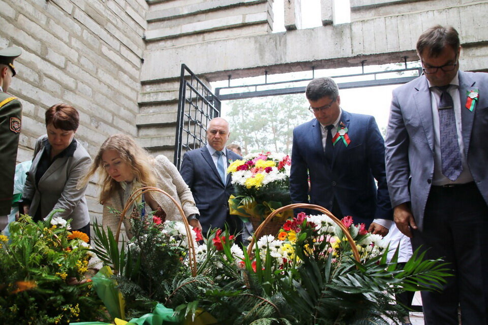 В День 79-й годовщины освобождения Могилева от немецко-фашистских захватчиков память павших героев почтили и на мемориальном комплексе «Лагерь смерти», расположенном на проспекте Шмидта.