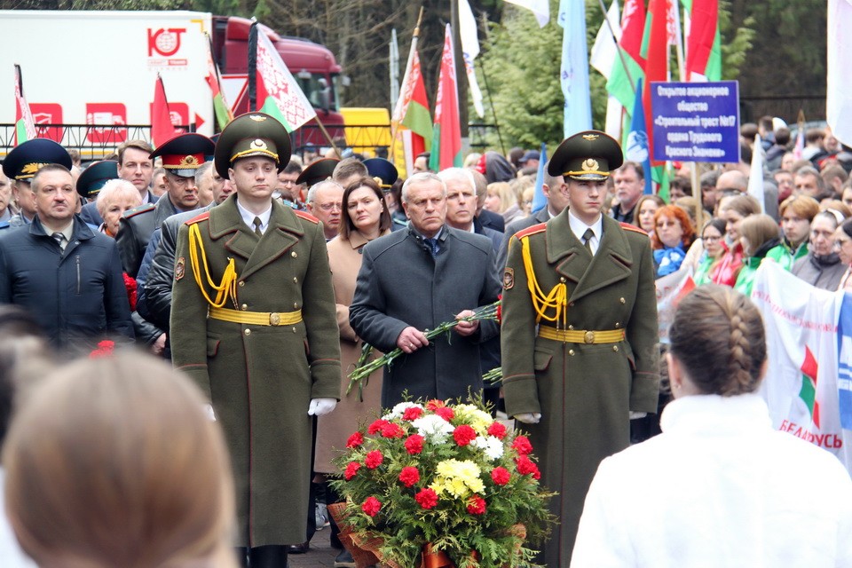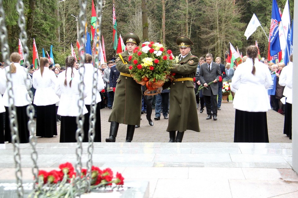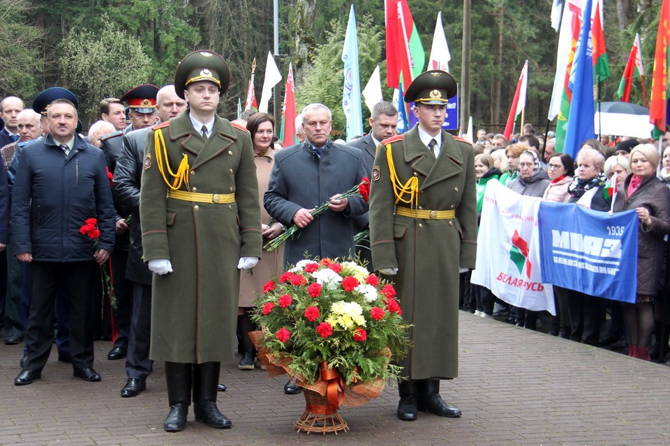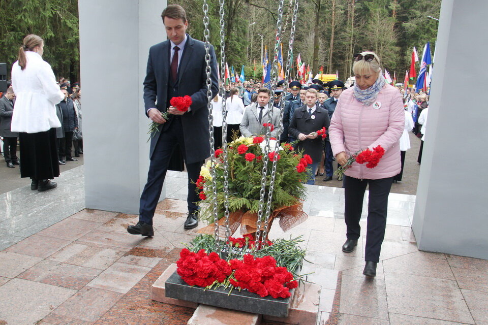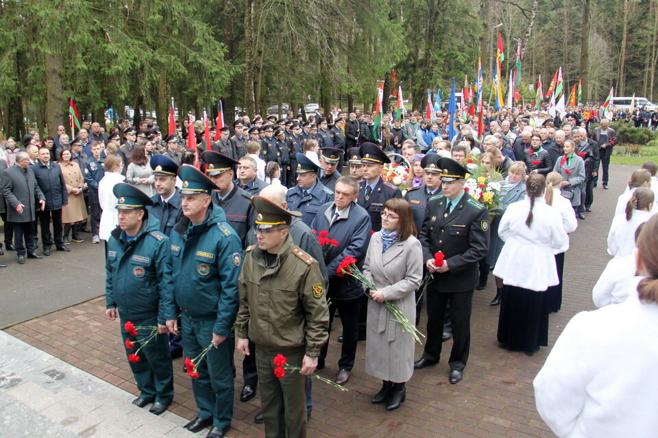 У памятного знака в Любуже собрались представители городской власти, депутаты, члены общественных организаций, работники предприятий, ликвидаторы последствий страшной техногенной катастрофы.