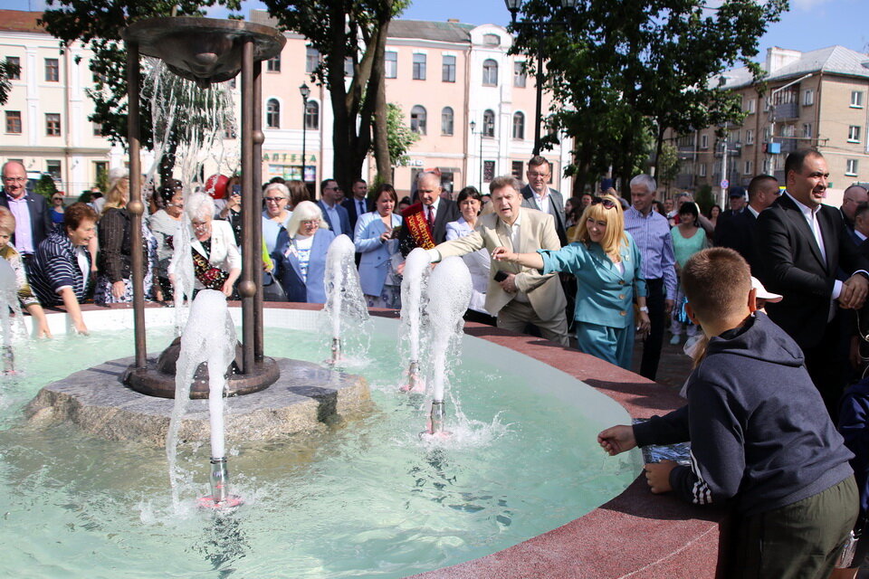 После реконструкции вновь заискрился струями фонтан. Автор центральной композиции – известный могилевский скульптор Андрей Воробьев. Через фонтан друг на друга смотрят или двое, или театральные маски, или… Наверное, каждый увидит в этих образах что-то свое. Причем фонтан будет хорошо заметен и вечером – у фонтана есть подсветка.