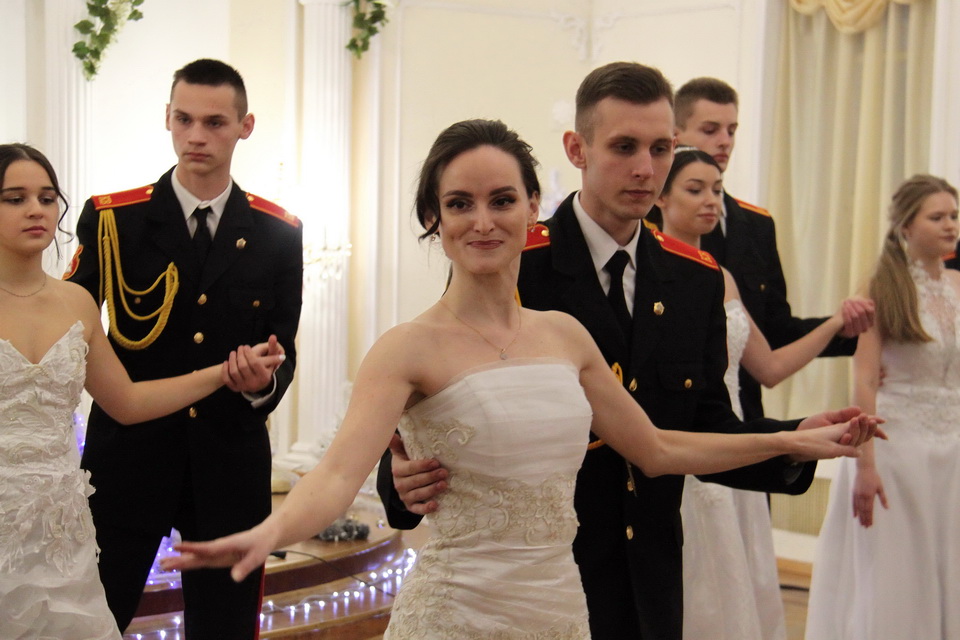 Сверкание люстр, блеск эполетов, прекрасная музыка, предвкушение восторга от возможности ощутить те чувства, которые испытывали наши прадедушки и прабабушки. Атмосфера Могилевского ЗАГСа располагает к исполнению в его стенах полонеза, галопа, вальса. Эти и другие танцы были включены в бальную карту вечера. Для кадетов это настоящий подарок – отдохнуть от кадетских будней и погрузиться в атмосферу XIX века. Для юных артисток студии эстрадного танца «Эдельвейс» Центра творчества «Эверест» – новый выход на сцену и повод примерить ослепительные вечерние наряды, о которых мечтают многие девушки всех столетий.