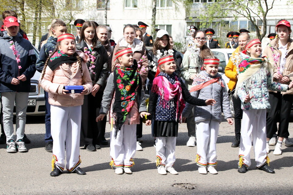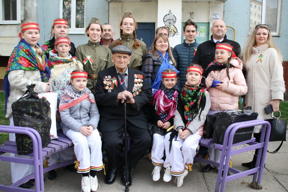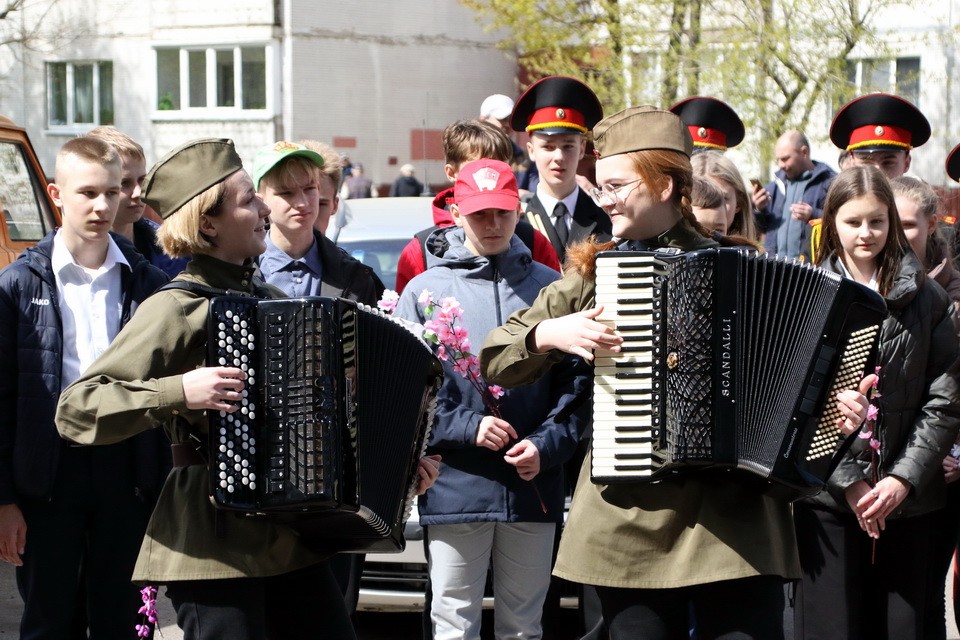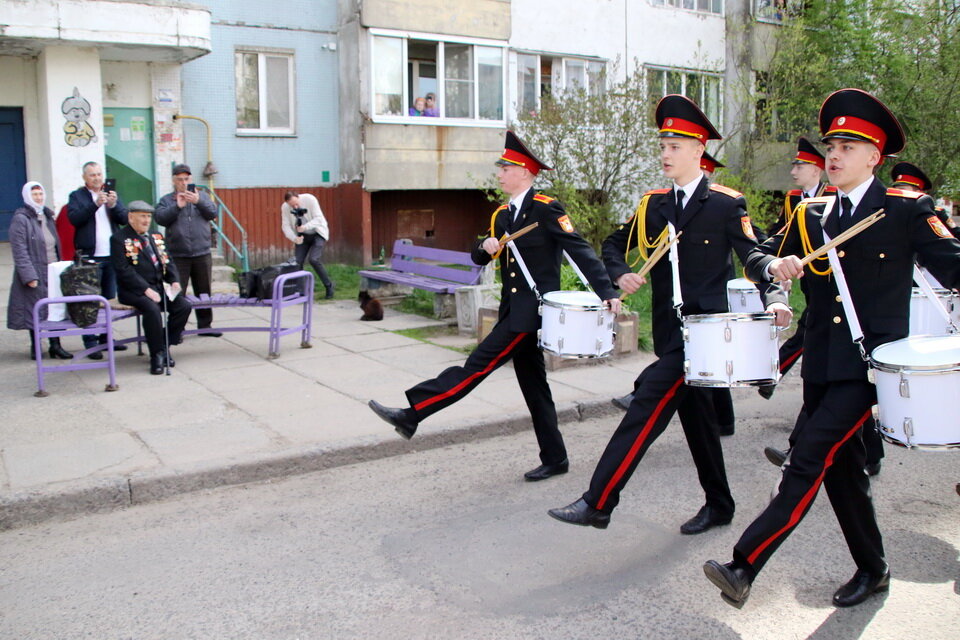 На звуки оркестра на крылечко подъезда многоэтажки по проспекту Пушкинскому вышел 98-летний ветеран Павел Ефимович Козлов. Там его ждали депутат Палаты представителей Ольга Петрашова, школьники, кадеты, учащиеся гимназии-колледжа искусств им. Е. Глебова и соседи. Гости вручили ветерану поздравительный адрес и памятные подарки. Кадеты организовали для ветерана небольшой парад прямо во дворе дома, учащиеся гимназии-колледжа искусств исполнили для него песни военных лет, а «Дню Победы» подпевали даже выглянувшие из окошек многоэтажки соседи.