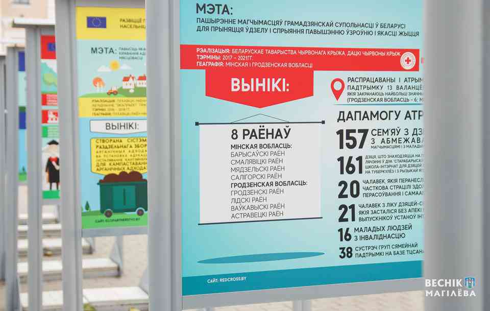 На стендах под открытым небом можно увидеть проекты белорусов, которые удалось реализовать при финансовой поддержке Представительства Европейского союза в Республике Беларусь. Впервые «Проекты в лицах» появились в Могилеве три года назад.