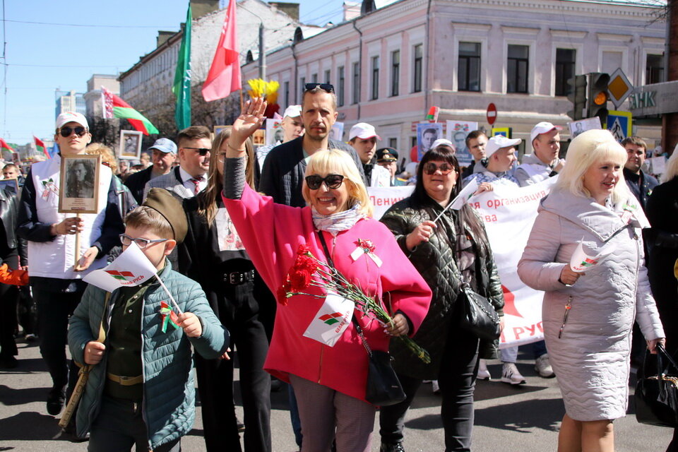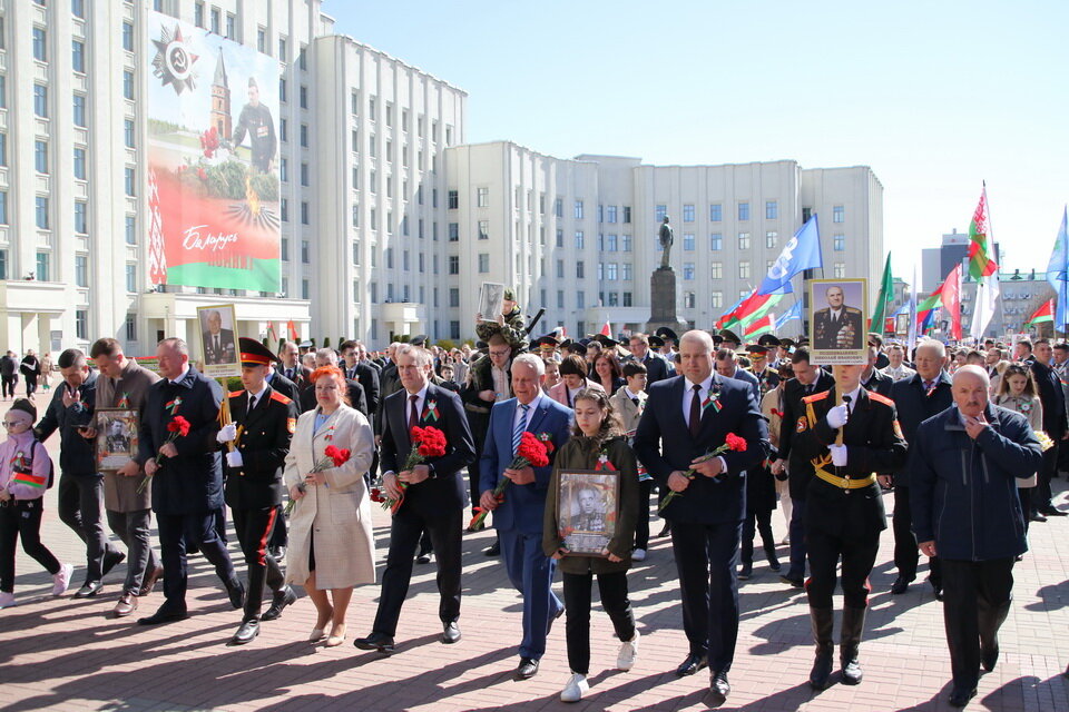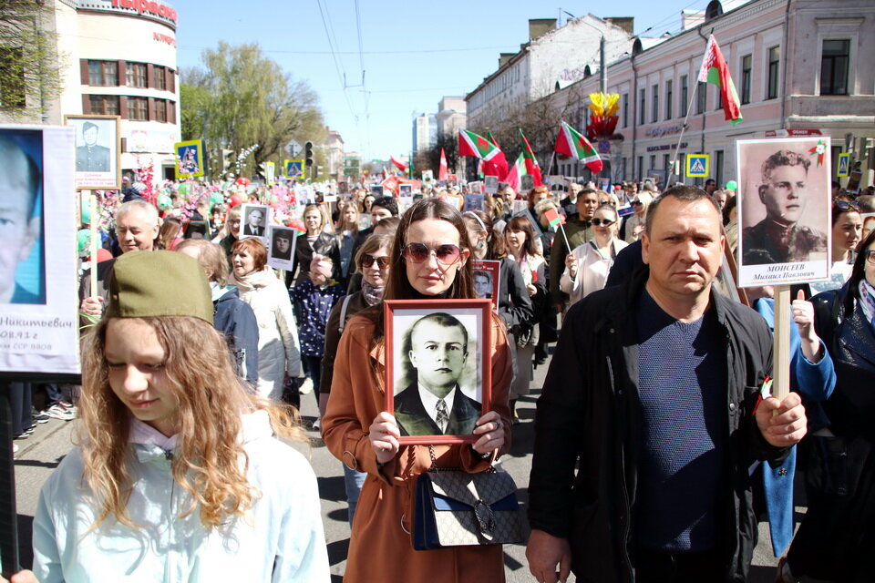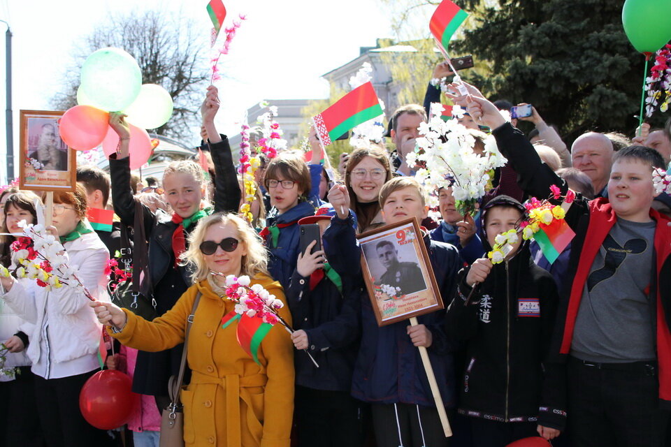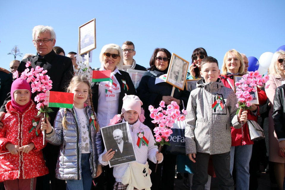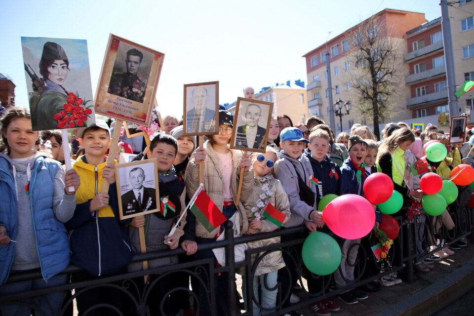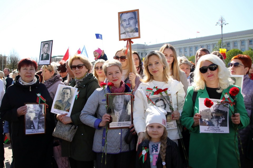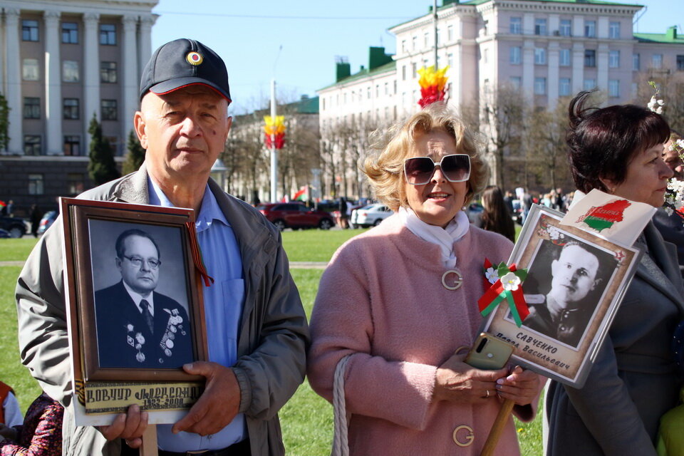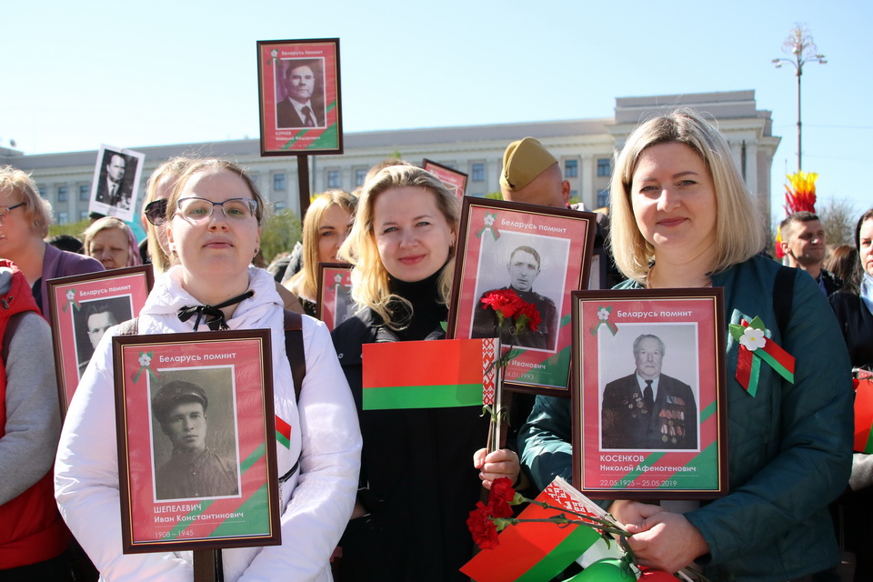 Настоящее людское море 9 Мая – от площади Ленина до площади Славы. Во главе колонны — автомобили с ветеранами войны. А за ними в праздничных колоннах – представители власти, трудовые коллективы, общественные объединения. На акцию «Беларусь помнит» многие пришли с портретами предков — сотни имен тех, память о ком берегут. Портреты своих прадедов и прабабушек, воевавших на фронтах Великой Отечественной, несли школьники, шедшие за ветеранами в праздничной колонне. А за ними – абсолютно разные судьбы, тысячи Подвигов и общая Великая Победа. Уже 4 поколения свято берегут историческую память, в которой воедино сплетены героизм, стойкость и мужество народа.