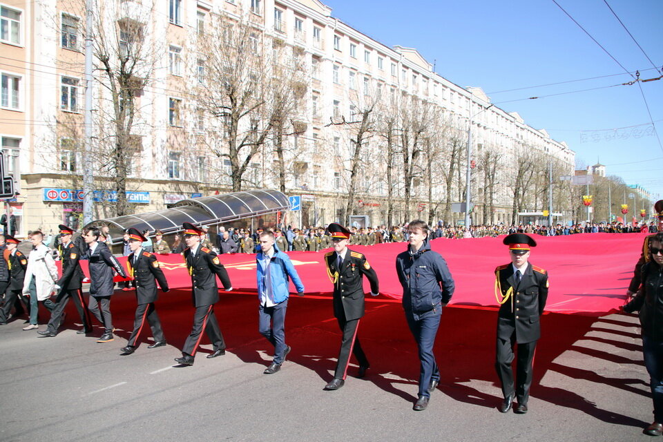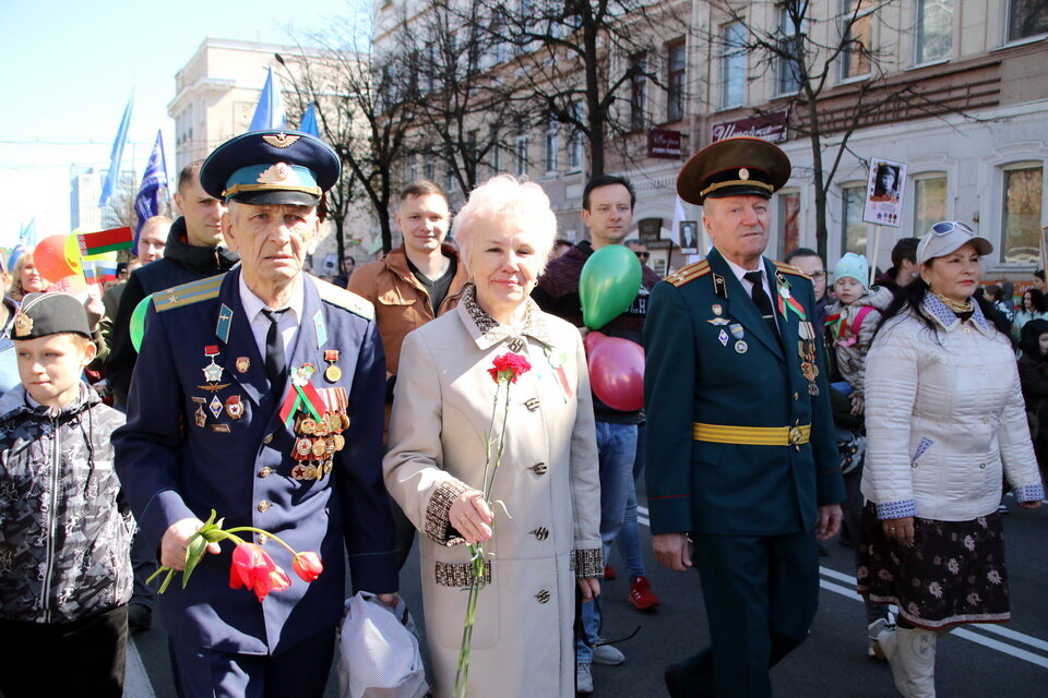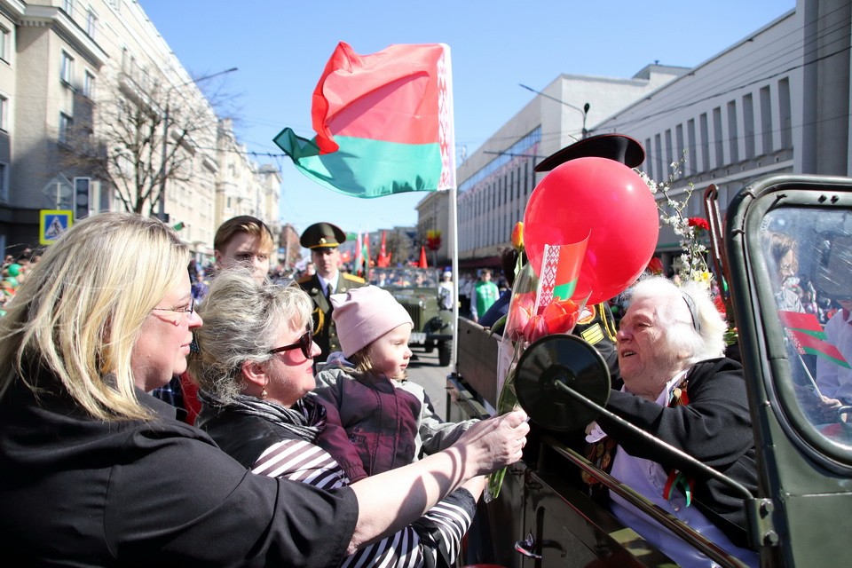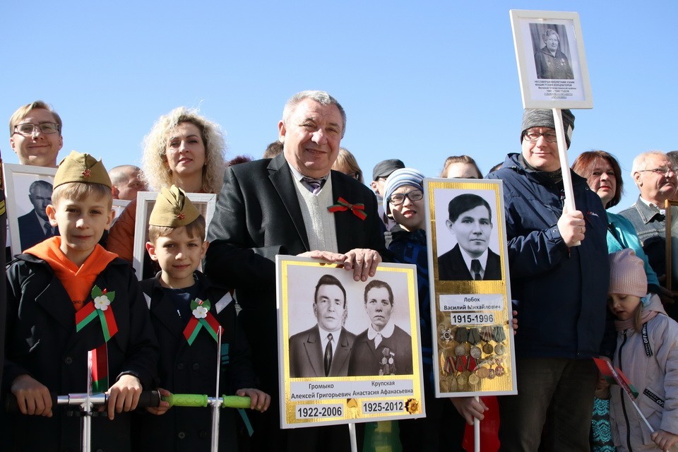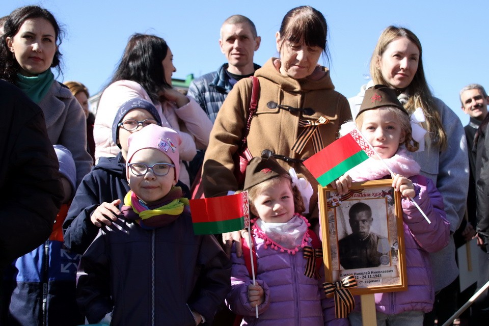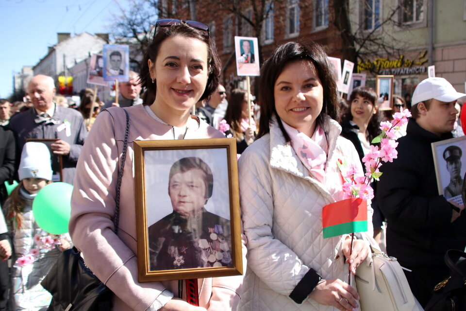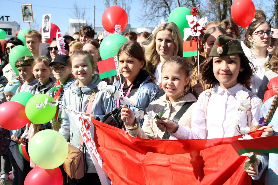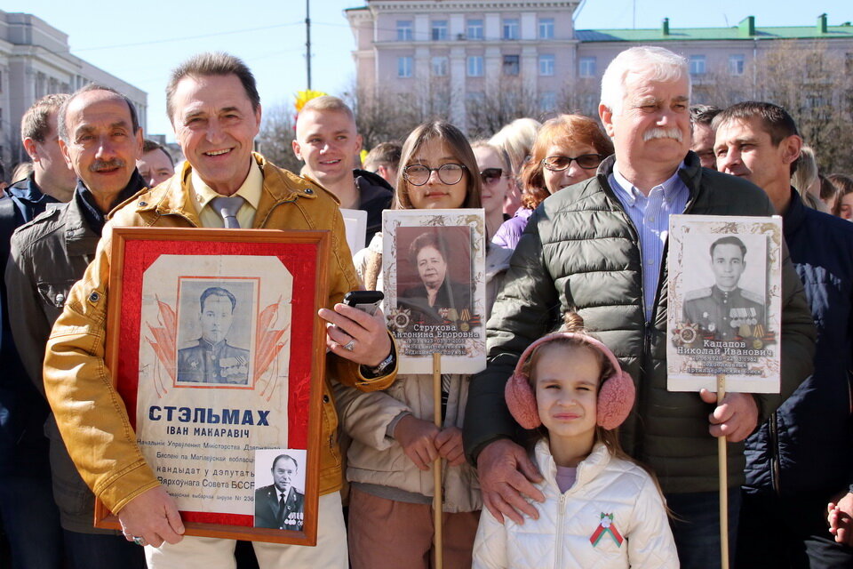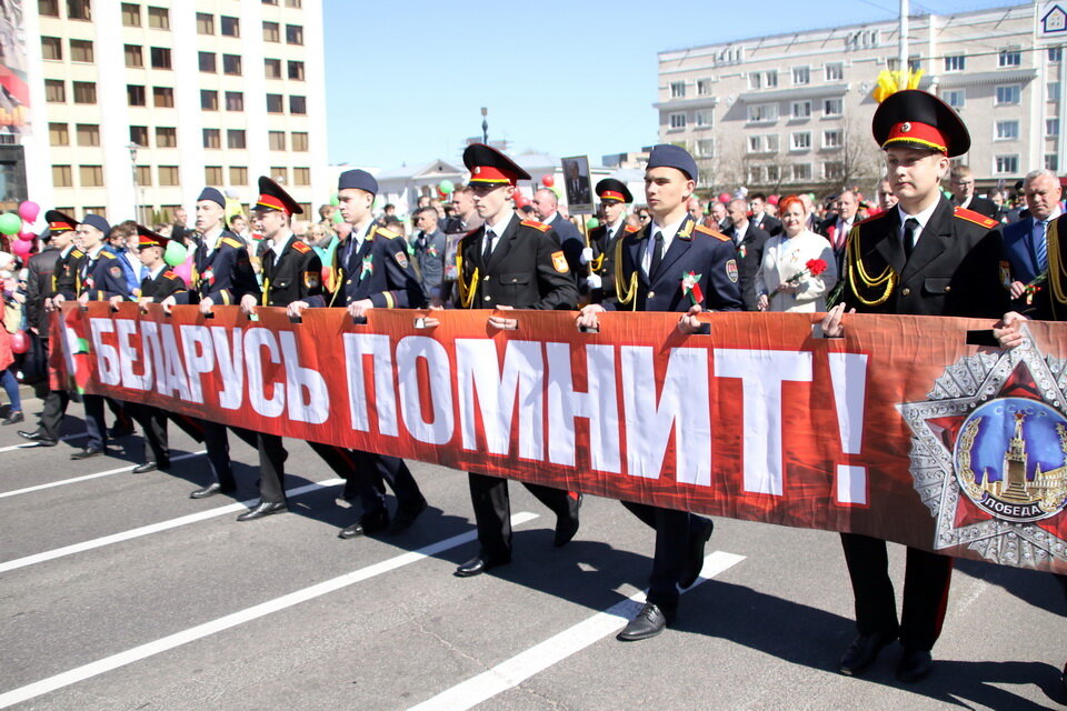 Настоящее людское море 9 Мая – от площади Ленина до площади Славы. Во главе колонны — автомобили с ветеранами войны. А за ними в праздничных колоннах – представители власти, трудовые коллективы, общественные объединения. На акцию «Беларусь помнит» многие пришли с портретами предков — сотни имен тех, память о ком берегут. Портреты своих прадедов и прабабушек, воевавших на фронтах Великой Отечественной, несли школьники, шедшие за ветеранами в праздничной колонне. А за ними – абсолютно разные судьбы, тысячи Подвигов и общая Великая Победа. Уже 4 поколения свято берегут историческую память, в которой воедино сплетены героизм, стойкость и мужество народа.