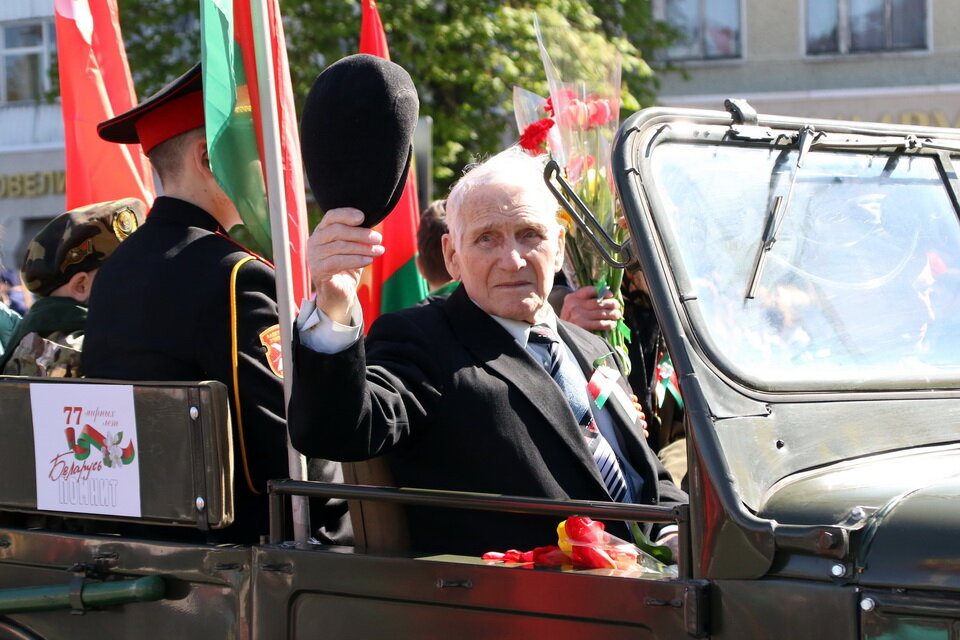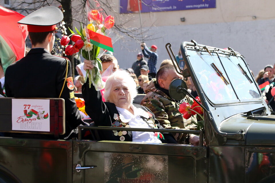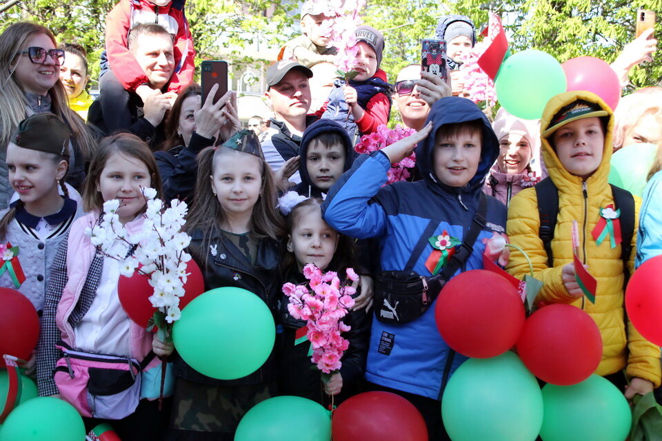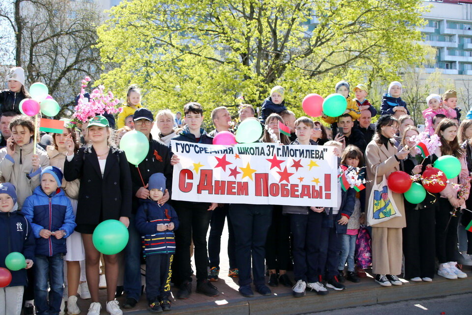 В Могилеве тысячи человек собрались на торжественное шествие-парад «Победа в сердцах поколений». Оно открыло большую программу праздничного дня. Все, кому дорога память о Подвиге, во понедельник утром собрались на площади Ленина и Первомайской улице.