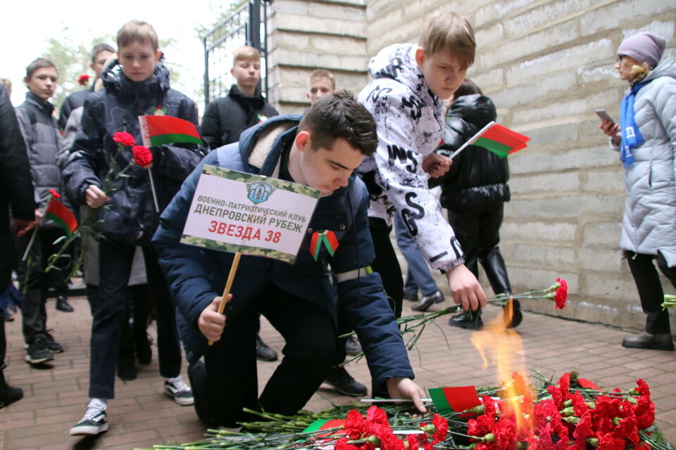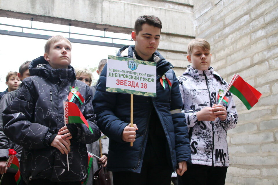 Он передал экземпляр книги «Геноцид белорусского народа. Лагеря смерти» военно-патриотическому клубу «Днепровский рубеж» Октябрьского района. Члены клуба посещают памятные места, узнают историю своей страны, знакомятся с бытом военнослужащих, ведь некоторые из них мечтают связать свою жизнь с военным делом.