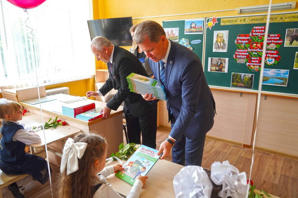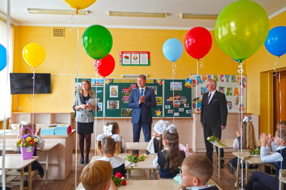Кроме школьников, взволнованных родителей и учителей на торжественной линейке присутствовали заместитель Генерального прокурора Республики Беларусь Сергей Марук и председатель Могилевского горисполкома Александр Студнев.